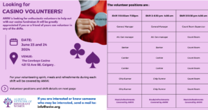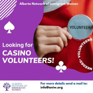 The Alberta Network of Immigrant Women is looking for enthusiastic volunteers to help out with our casino fundraiser. Volunteer Roles: